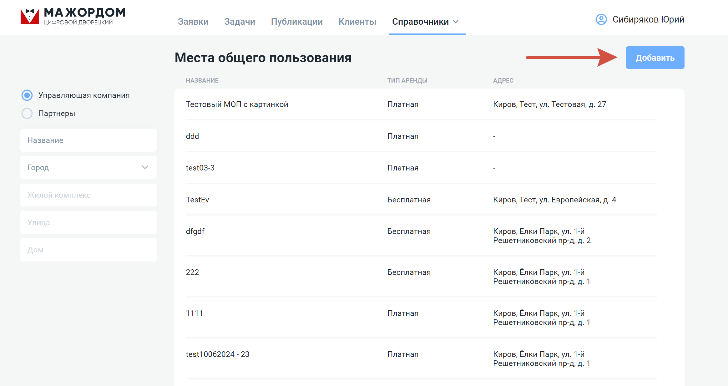 Помимо управления бронирования МОП через мобильное приложение жильцом, так же имеется возможность управлять бронированиям через админ-панель Мажордом.