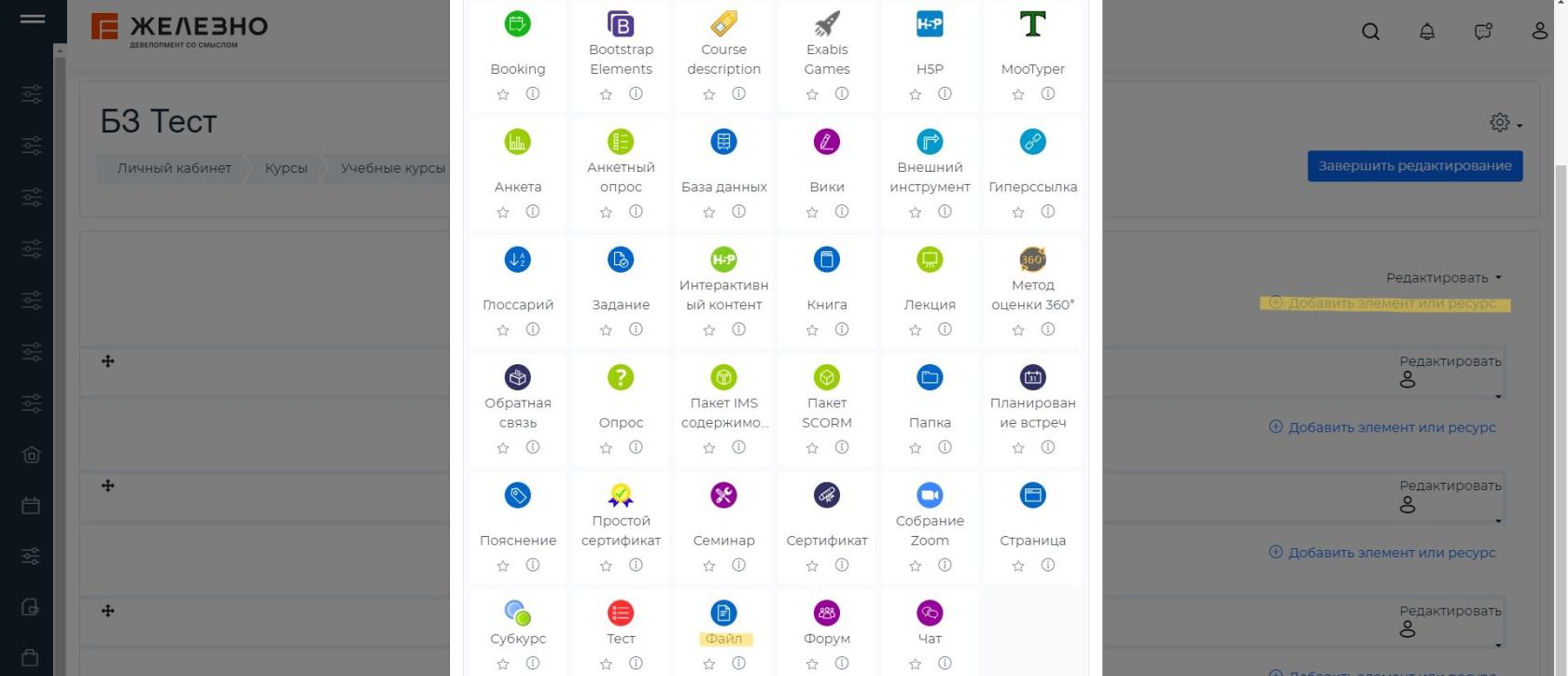 3. Добавляем элемент курса - файл. (можно добавить ссылку на документ)